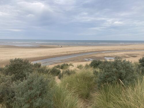 At this time in the morning there weren’t many people on the beach at Old Hunstanton. The NCP took us away from the beach, behind the chalets and eventually into the dunes next to a golf course. We found ourselves walking through waist high foliage and dodging brambles. Classic British walking, but probably the only instance of this on the whole trail.