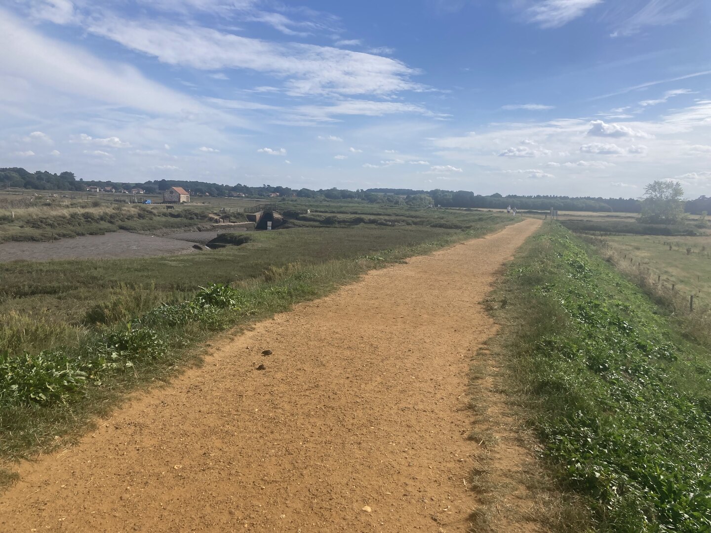 The second day started with us walking right out to the saltmarshes, far away from the villages. It was necessary for the path to dart back inland to cross the river Burn just before Burnham Overy Staithe.