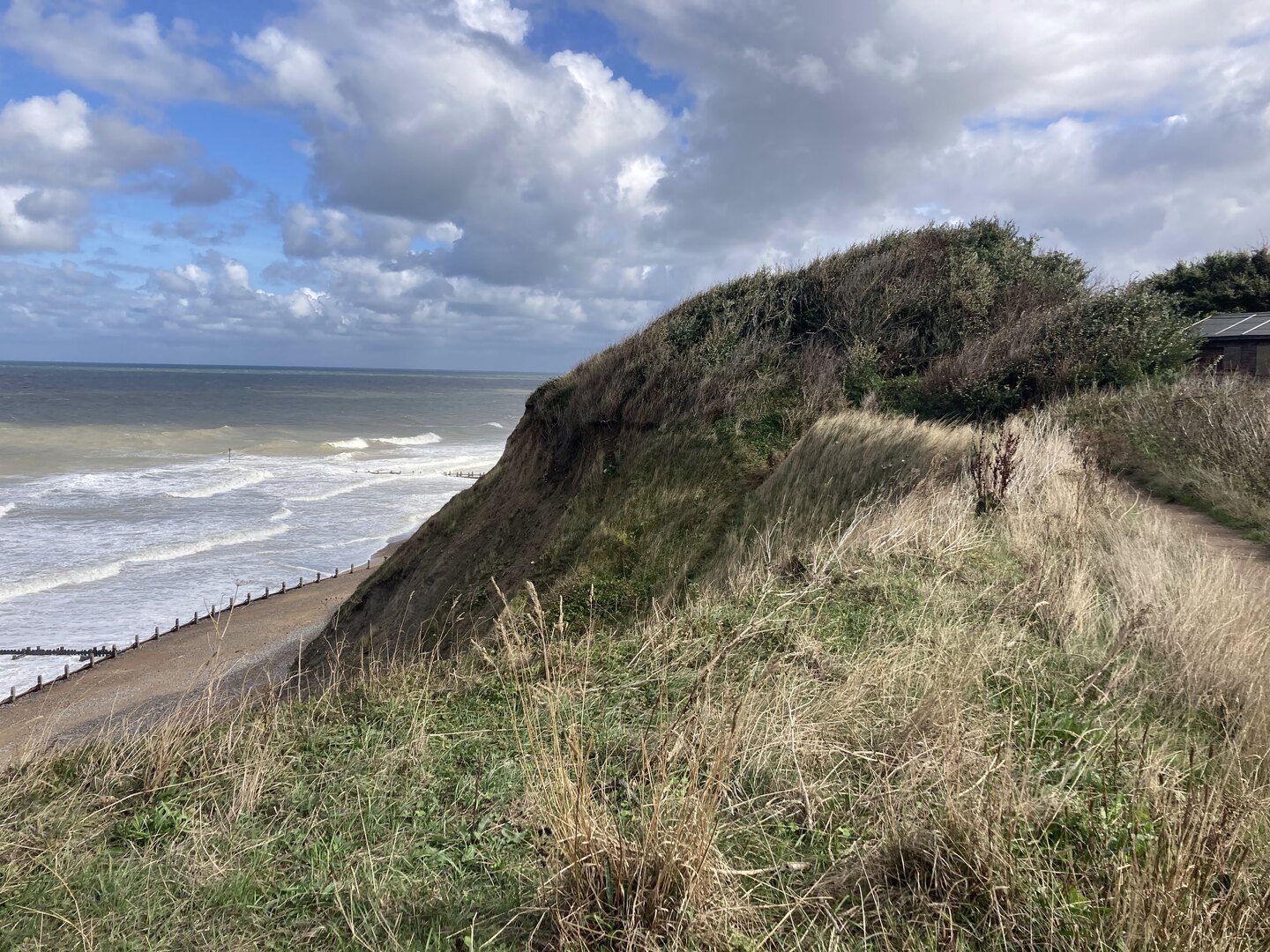 We walked most of the way along the cliff towards Cromer but in many places the path has been diverted inland due to erosion. One part in particular was so close to the edge it will surely be gone in a few years.
