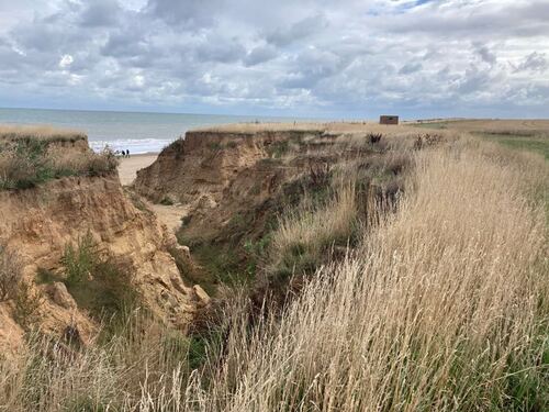 The NCP here begins to take on the character that dominates the second half. Long gone are the salt marshes; here we see endless sandy beaches, cliffs and constant reminders of a sad fact: this part of the country is literally disappearing into the sea. Norfolk is one of the most rapidly eroding areas in the country.