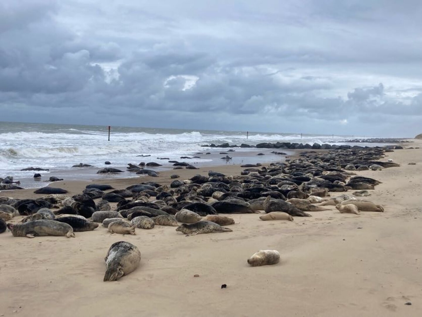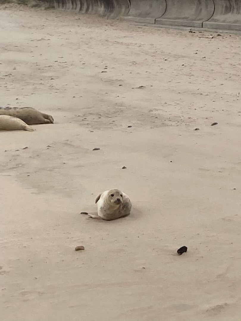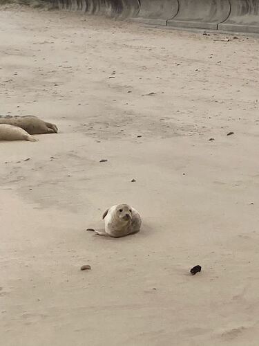 The rain set in again after lunch as we walked along more beaches, dunes and sea walls towards one of Norfolk’s local wonders: the seals at Horsey Gap. A large colony of grey seals has taken up residence on the beaches between Horsey and Winterton. At this time of year the pups are around 9 months old and the seals just like to lounge on the beach. There were so many at one part that we were forced off the beach and into the dunes.