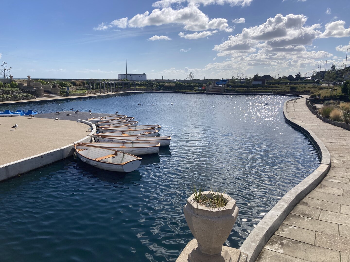 But today was really different because it was the Queen’s funeral. It was long past prime holiday season, but even at Caister it felt eerily quiet. We walked past the caravan parks and the dunes on the edge of Great Yarmouth and on through the Venetian Waterways. Yarmouth was dead, as if it was Christmas day, except the weather was glorious.